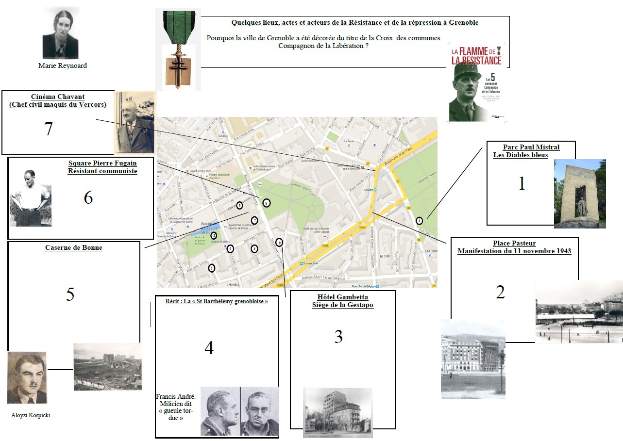 Le matin les élèves ont effectué un parcours au centre-ville de Grenoble entre le Parc Paul Mistral et la Caserne de Bonne sur les lieux d’actions de la Résistance contre la domination nazie et le Régime de Vichy à l’automne 1943. Cette visite, qui s’est accompagnée l’après-midi par des échanges et le visionnage de témoignages d’anciens déportés isérois rescapés des camps de concentration allemands, a permis en outre de comprendre la répression exercée par l’État nazi et par la collaboration française contre des femmes et des hommes qui œuvrent alors par leur engagement à défendre leurs concitoyens, à maintenir les valeurs universelles des Droits de l’Homme, de la République et à agir pour la libération de la France.